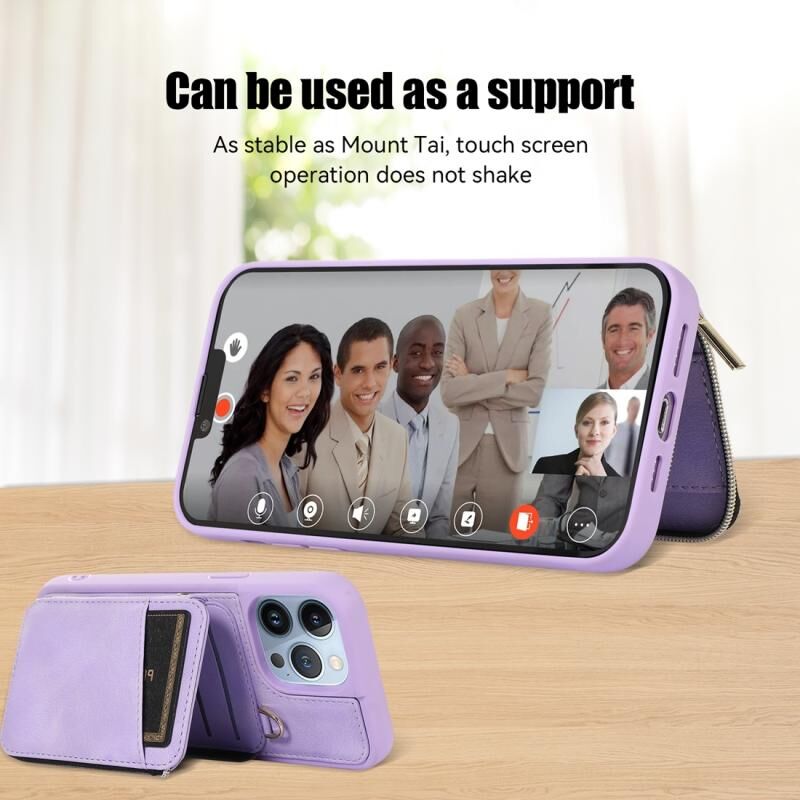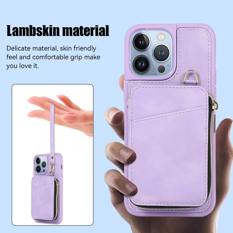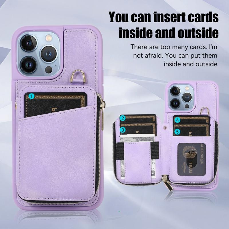 For iPhone 13 Pro Max Zipper Card Bag Back Cover Phone Case(Purple)
