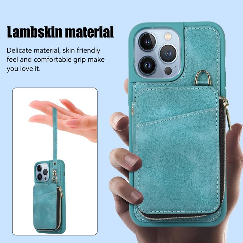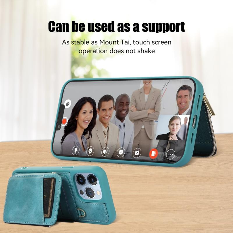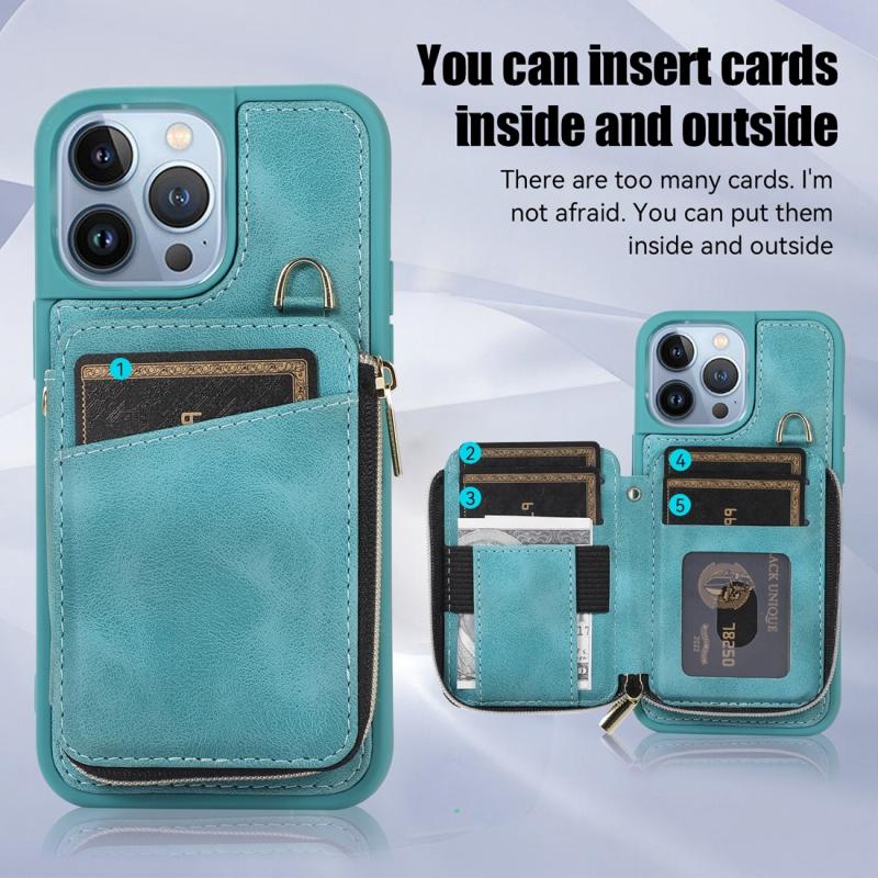 For iPhone 13 Pro Max Zipper Card Bag Back Cover Phone Case(Turquoise)