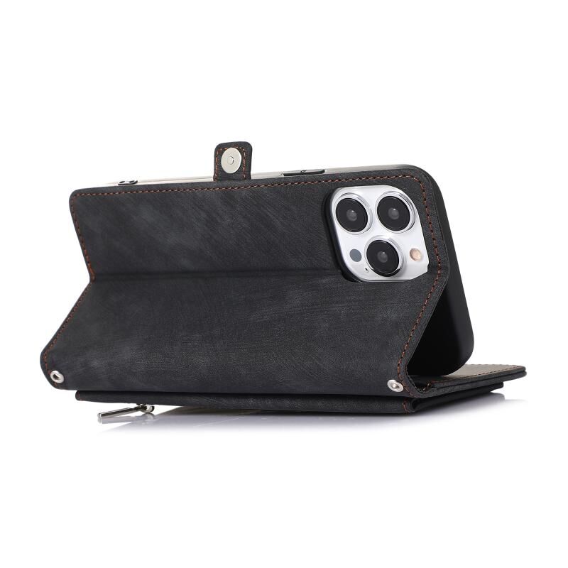 For iPhone 13 Pro Max Zipper Card Slot Buckle Wallet Leather Phone Case(Black)