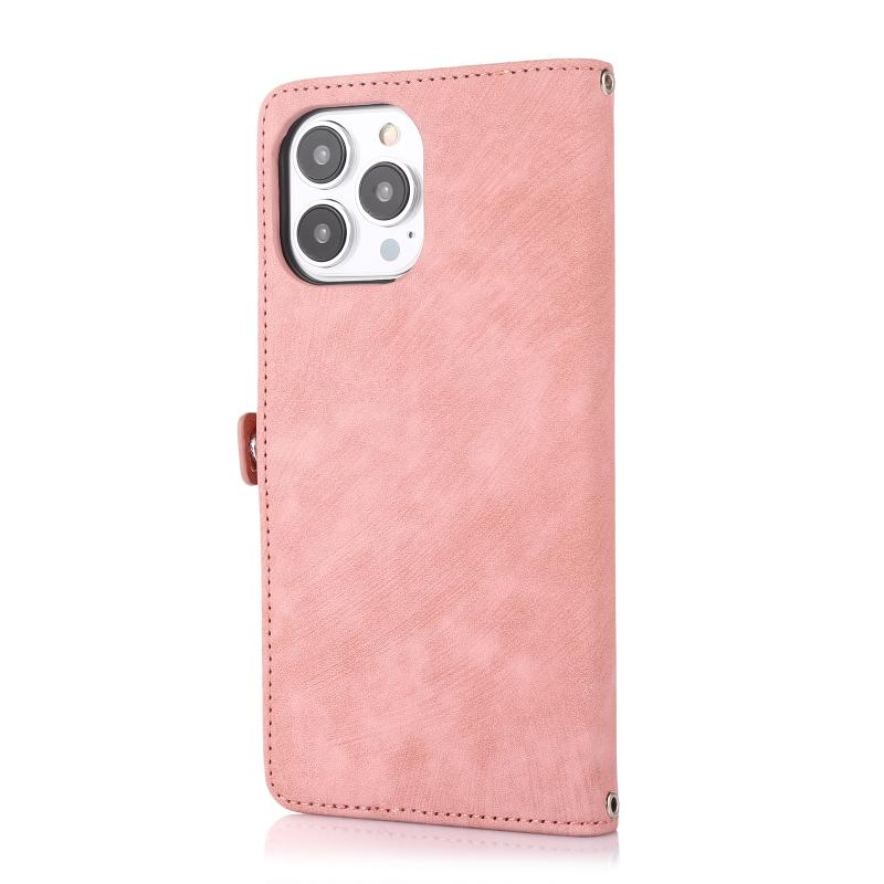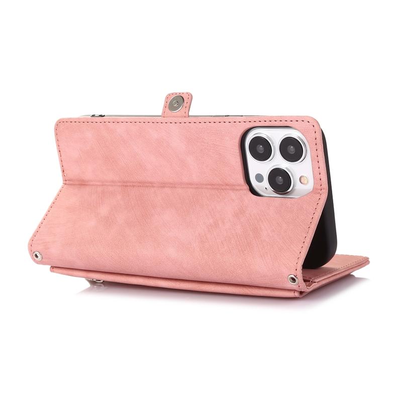For iPhone 13 Pro Max Zipper Card Slot Buckle Wallet Leather Phone Case(Pink)