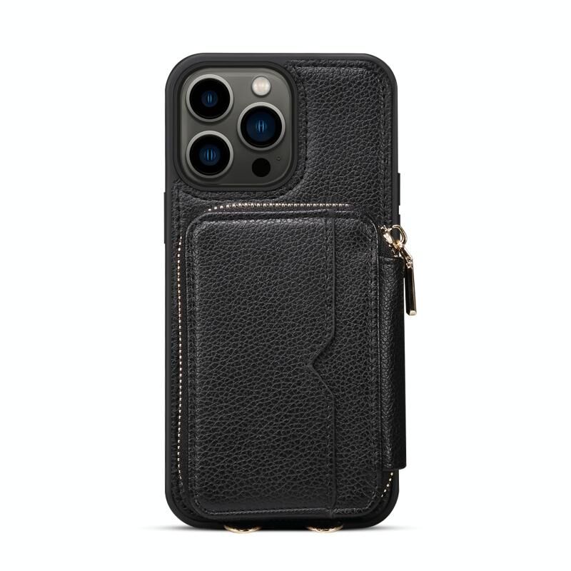Θήκη iPhone 13 Pro Max με Θήκη Κάρτας και Φερμουάρ (Μαύρο)