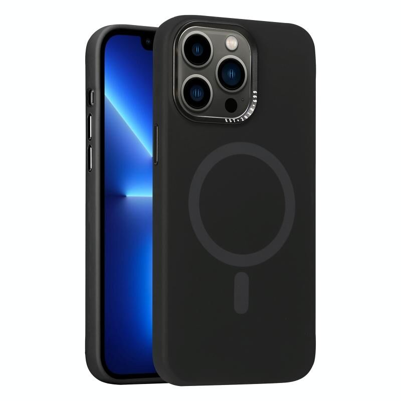 Θήκη τηλεφώνου για iPhone 13 Pro με μεταλλική στεφάνη φακού, υγρή σιλικόνη και MagSafe (Βαθύ Μωβ)