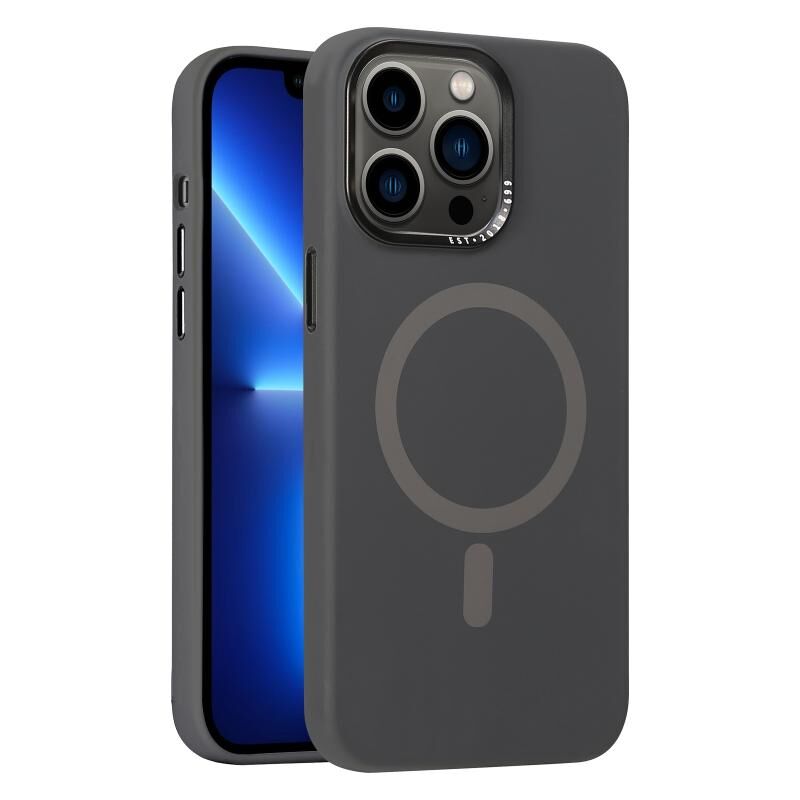 For iPhone 13 Pro Metal Lens Frame Liquid Silicone MagSafe Phone Case(Charcoal Gray)