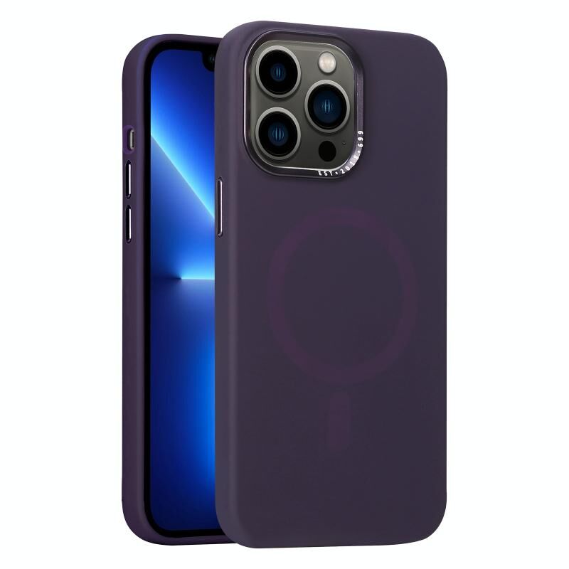 Θήκη τηλεφώνου για iPhone 13 Pro με μεταλλική στεφάνη φακού, υγρή σιλικόνη και MagSafe (Βαθύ Μωβ)