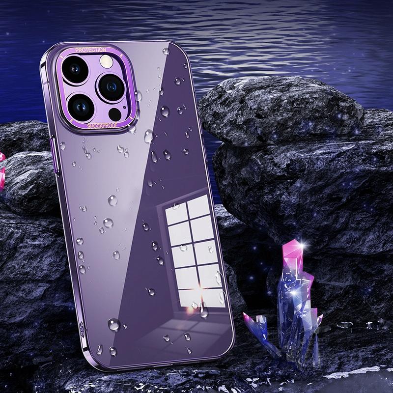 For iPhone 13 Pro Metal Lens Ring Clear PC Phone Case(Deep Purple)