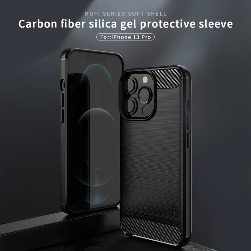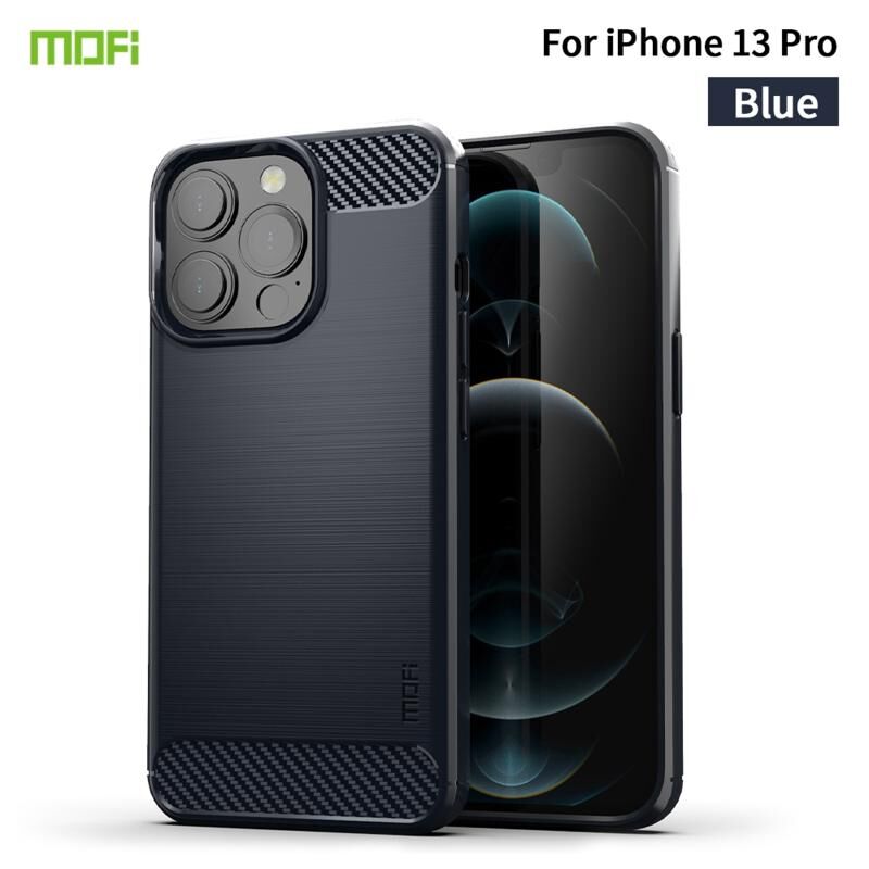 For iPhone 13 Pro MOFI Gentleness Series Brushed Texture Carbon Fiber Soft TPU Case (Blue) (MOFI)