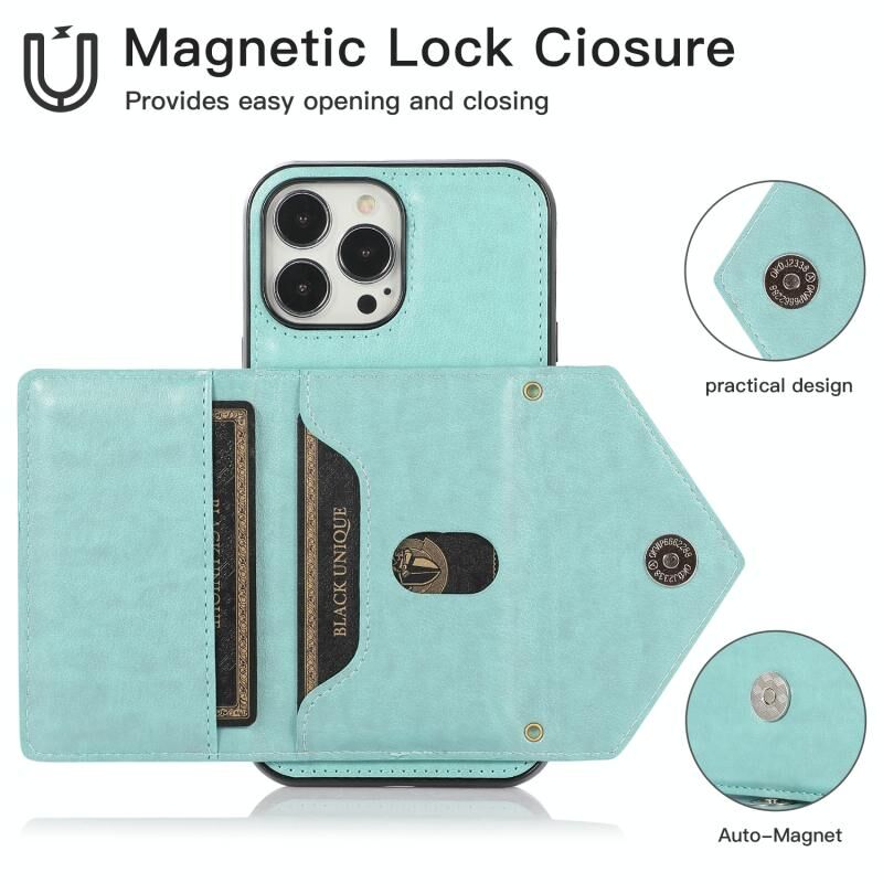 For iPhone 13 Pro Multi-functional Cross-body Card Bag TPU+PU Back Cover Case with Holder & Card Slot & Wallet (Green)