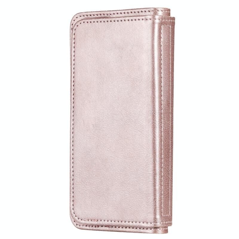 For iPhone 13 Pro Multifunctional Magnetic Copper Buckle Horizontal Flip Solid Color Leather Case with 10 Card Slots & Wallet & Holder & Photo Frame (Rose Gold)