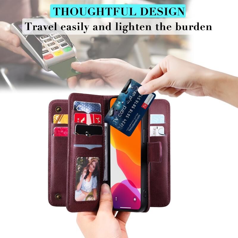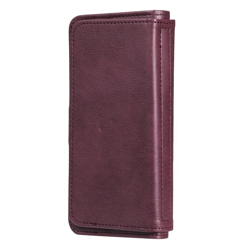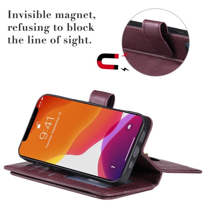 For iPhone 13 Pro Multifunctional Magnetic Copper Buckle Horizontal Flip Solid Color Leather Case with 10 Card Slots & Wallet & Holder & Photo Frame (Wine Red)