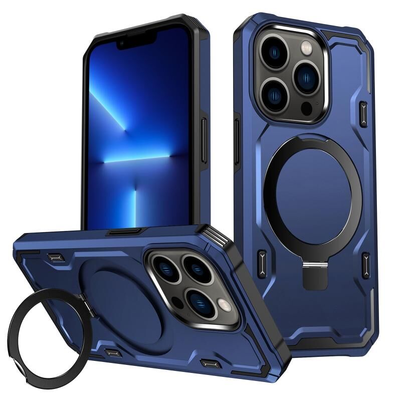 For iPhone 13 Pro Patronus MagSafe Magnetic Holder Phone Case(Navy Blue)