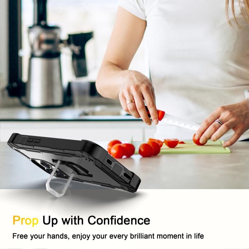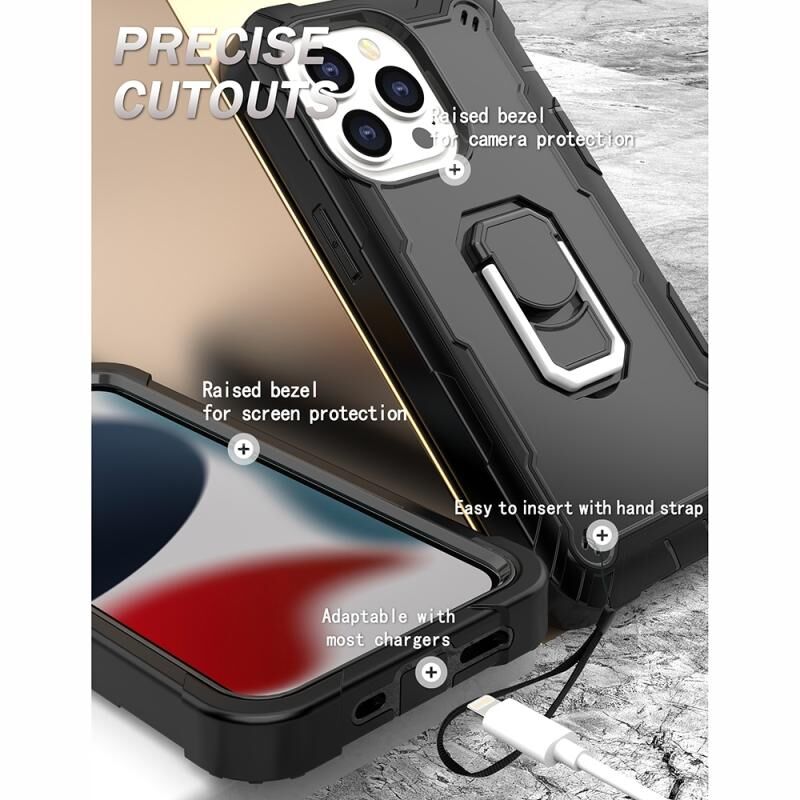 For iPhone 13 Pro PC + Rubber 3-layers Shockproof Protective Case with Rotating Holder (Black)