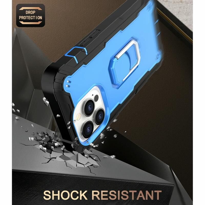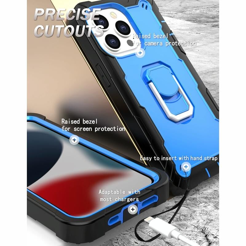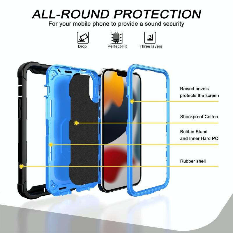 For iPhone 13 Pro PC + Rubber 3-layers Shockproof Protective Case with Rotating Holder (Black + Blue)