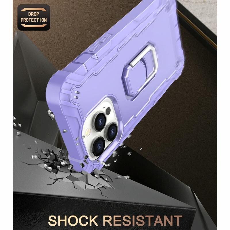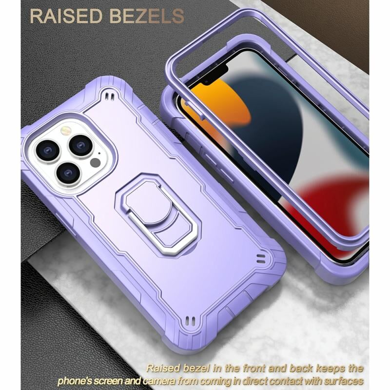 For iPhone 13 Pro PC + Rubber 3-layers Shockproof Protective Case with Rotating Holder (Purple)