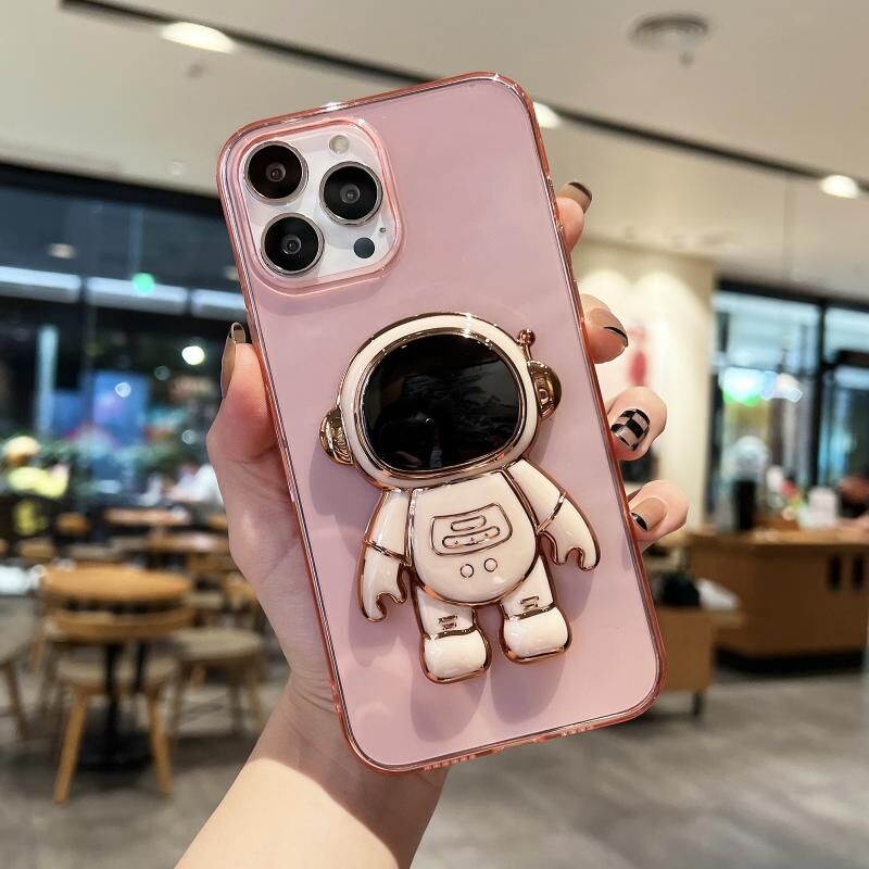Θήκη κινητού τηλεφώνου TPU με επιμετάλλωση αστροναύτη για iPhone 13 Pro (Διαφανές Λευκό)