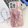 For iPhone 13 Pro Plating Glitter Lens Film Texture Butterfly Holder Wristband Phone Case(Pink Wrinkles)