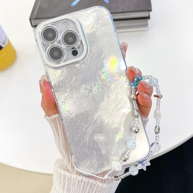 For iPhone 13 Pro Plating Glitter Texture Chain Wristband TPU Phone Case with Lens Film(White Tinfoil Texture)
