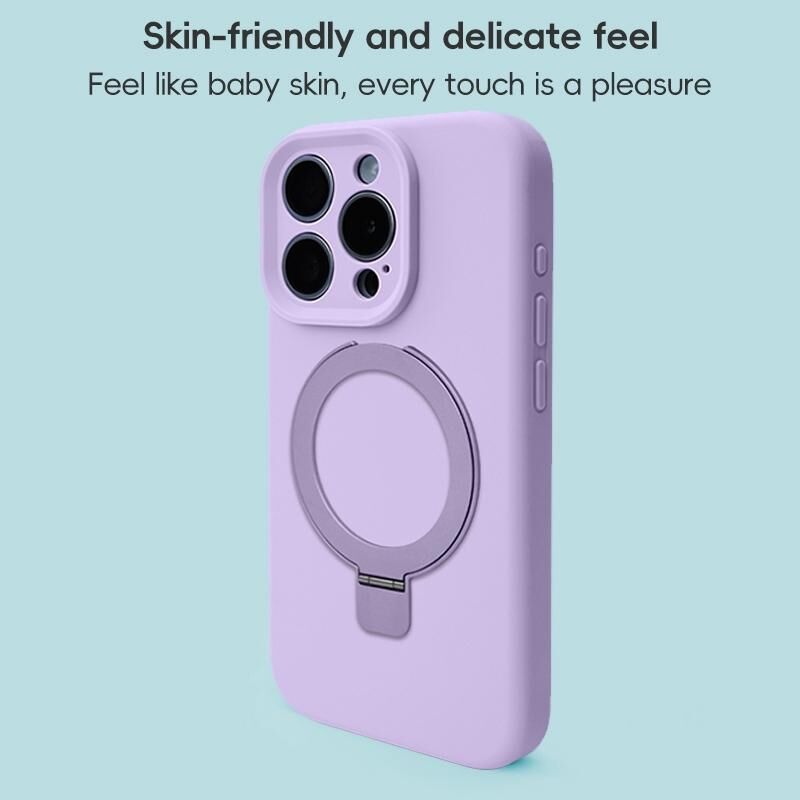 For iPhone 13 Pro Precision Hole Liquid Silicone MagSafe Metal Ring Holder Phone Case(Purple)