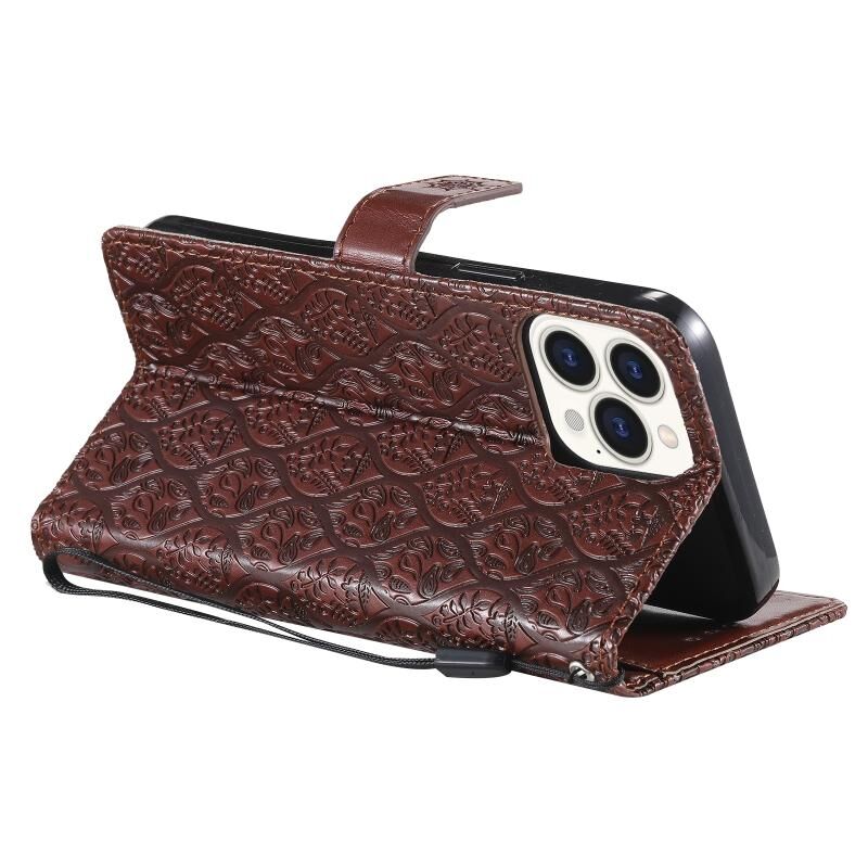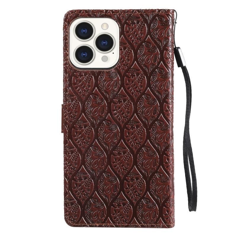 Θήκη για iPhone 13 Pro με εκτύπωση Pressed Printing, σχέδιο λουλουδιών από ρατάν, οριζόντια αναδιπλούμενη από δερματίνη PU με βάση στήριξης & θήκες για κάρτες & πορτοφόλι & κορνίζα φωτογραφιών (Μπλε)