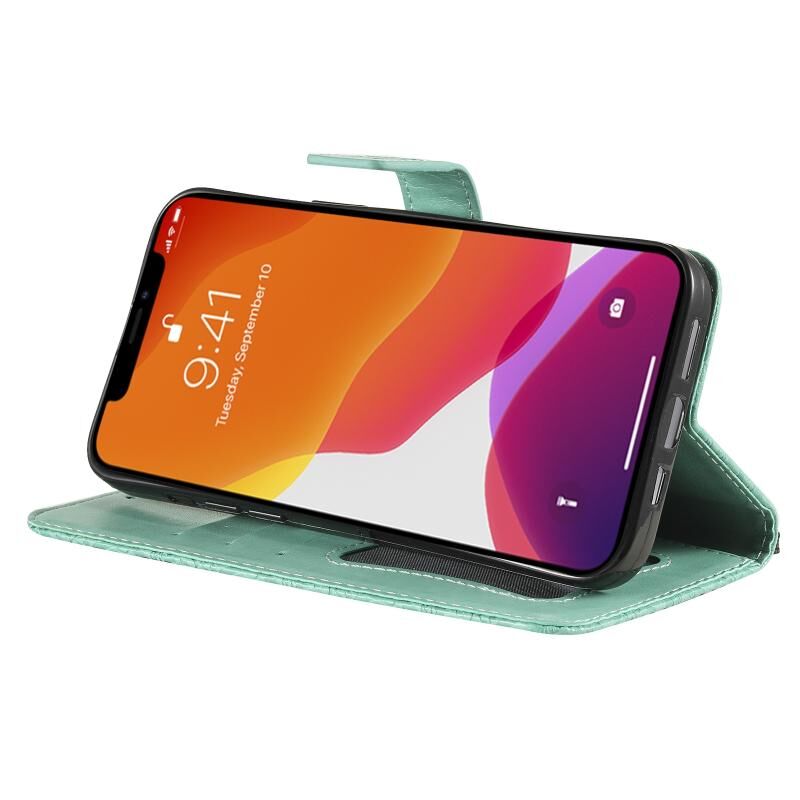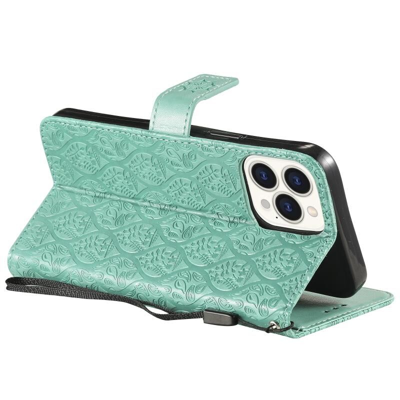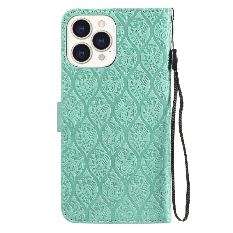 Θήκη για iPhone 13 Pro με εκτύπωση Pressed Printing, σχέδιο λουλουδιών από ρατάν, οριζόντια αναδιπλούμενη από δερματίνη PU με βάση στήριξης & θήκες για κάρτες & πορτοφόλι & κορνίζα φωτογραφιών (Μπλε)
