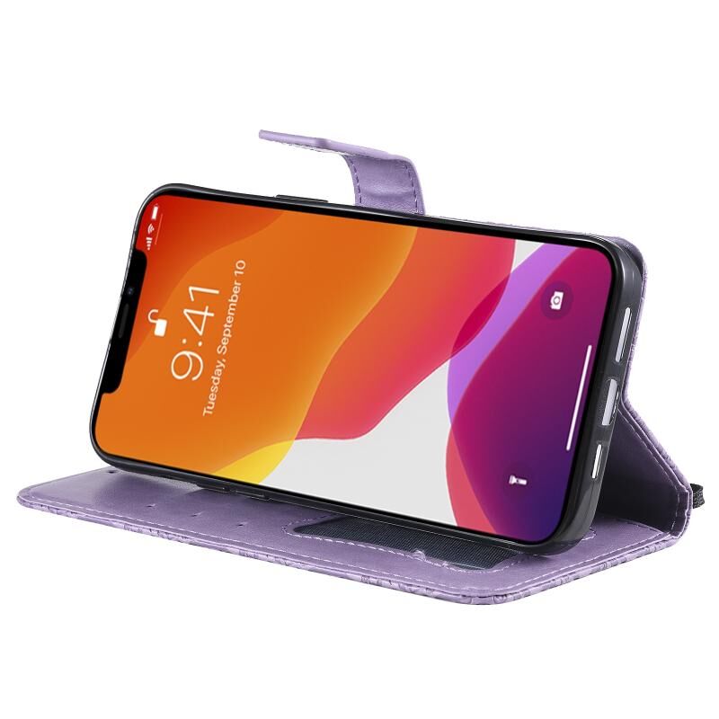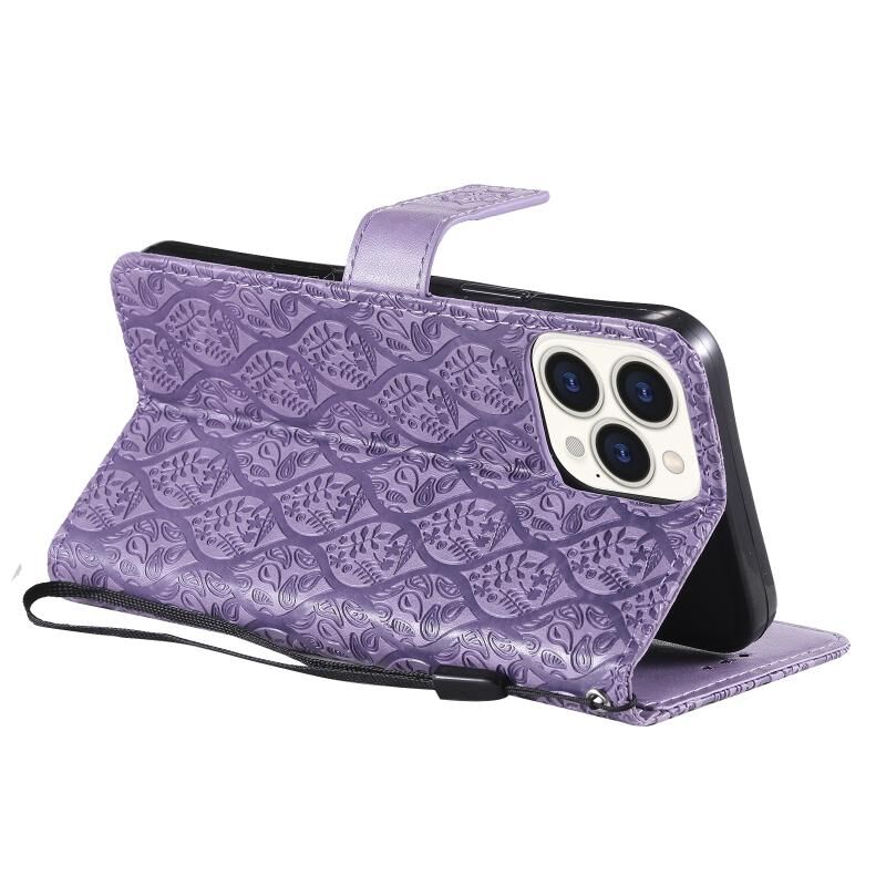 Θήκη για iPhone 13 Pro με εκτύπωση Pressed Printing, σχέδιο λουλουδιών από ρατάν, οριζόντια αναδιπλούμενη από δερματίνη PU με βάση στήριξης & θήκες για κάρτες & πορτοφόλι & κορνίζα φωτογραφιών (Μπλε)