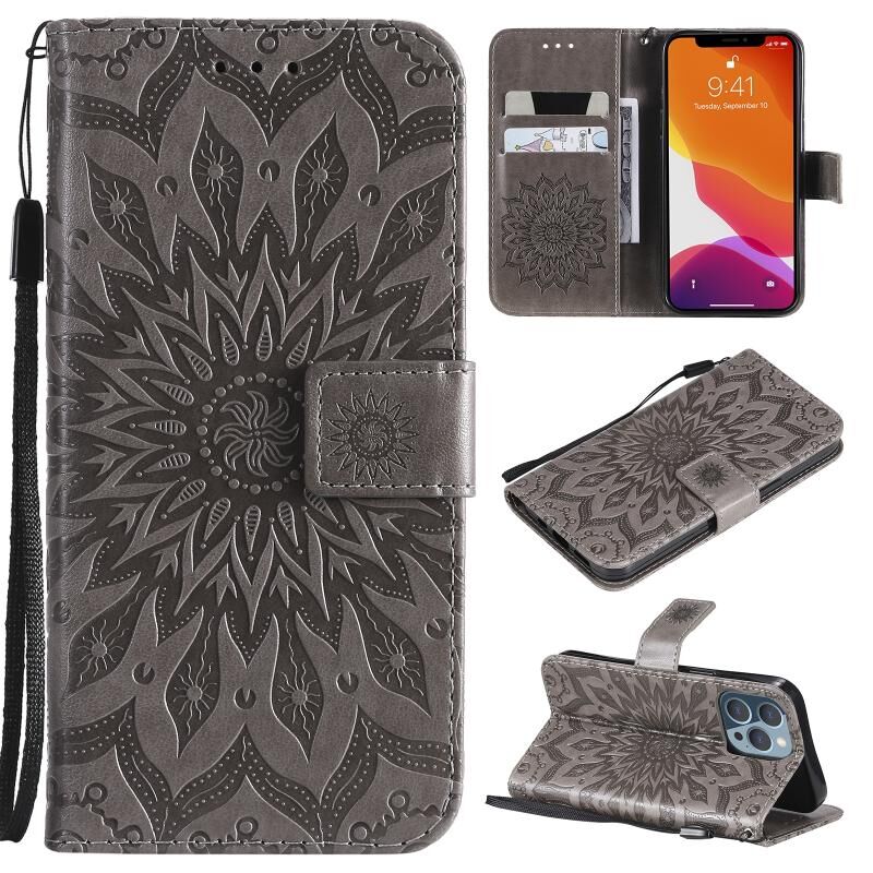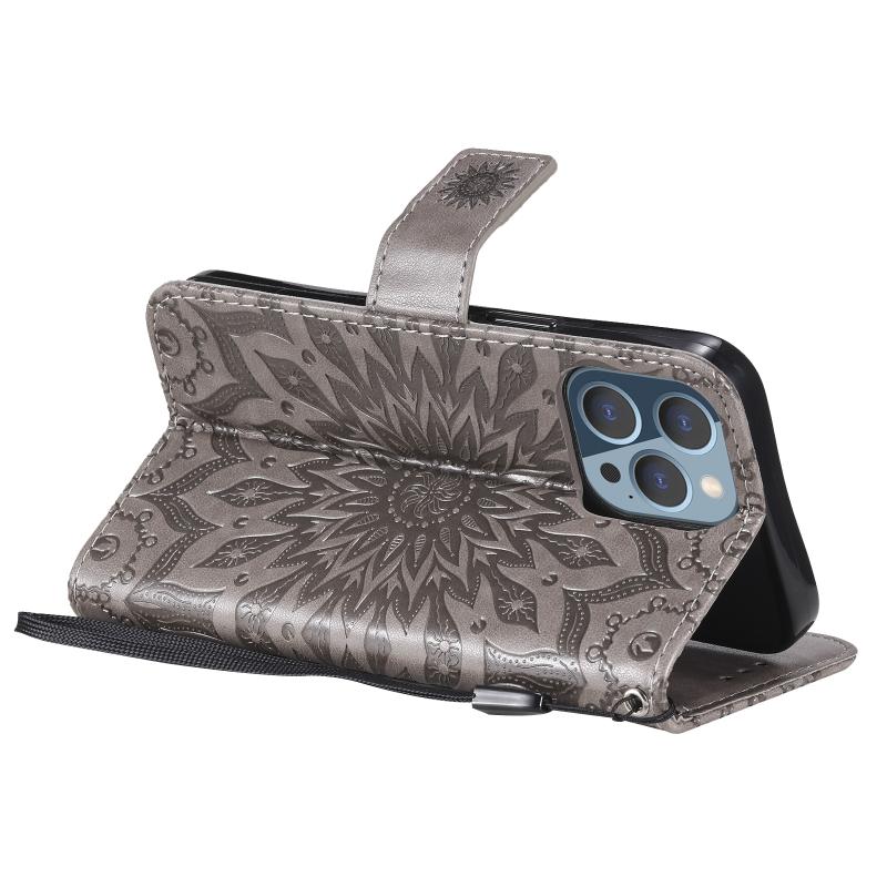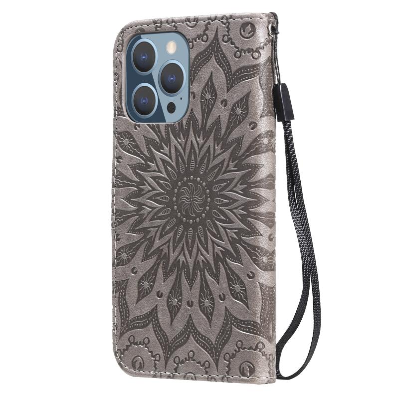 Θήκη για iPhone 13 Pro με εκτυπωμένο σχέδιο ηλίανθου, οριζόντια αναδιπλούμενη από δερματίνη PU, με θήκη για κάρτες, πορτοφόλι και λουρί (Χρυσό Ρόδινο).