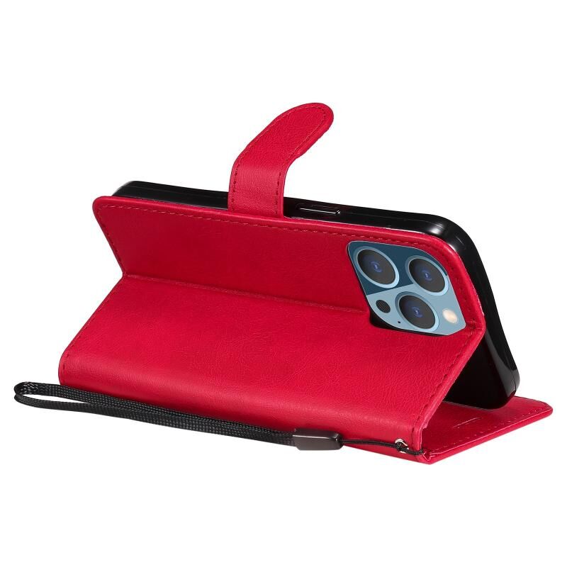 Θήκη για iPhone 13 Pro, καθαρού χρώματος, οριζόντια αναδιπλούμενη από δέρμα με βάση & θήκες για κάρτες & πορτοφόλι & κορδόνι (Καφέ)