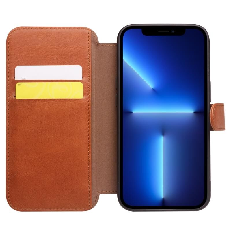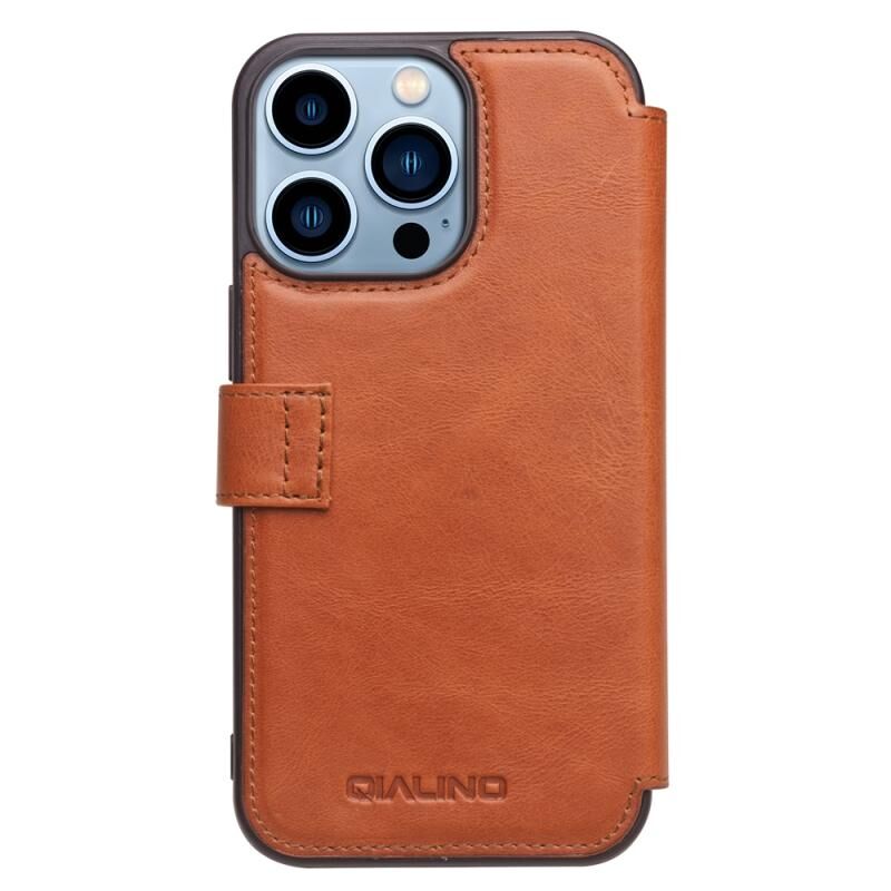 For iPhone 13 Pro QIALINO Magnetic Buckle Phone Leather Case with Card Slot (Brown) (QIALINO)
