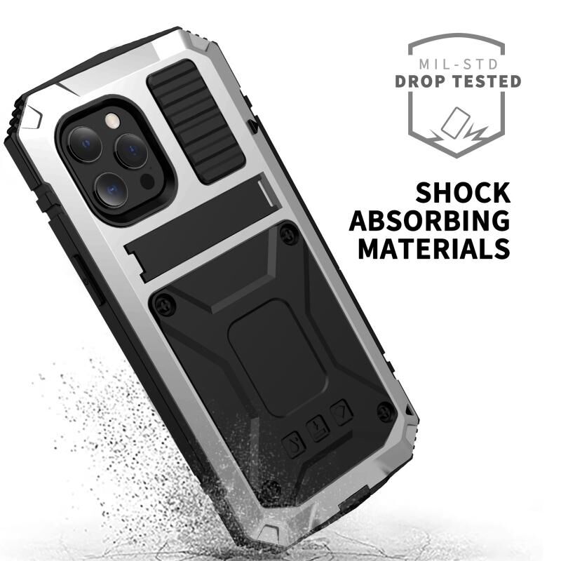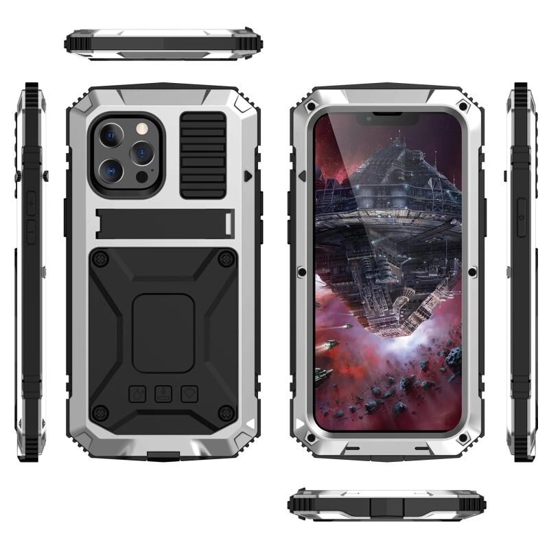 For iPhone 13 Pro R-JUST Shockproof Waterproof Dust-proof Metal + Silicone Protective Case with Holder (Silver) (R-JUST)