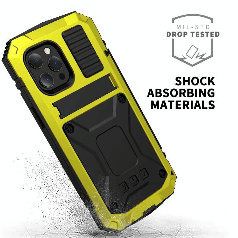 For iPhone 13 Pro R-JUST Shockproof Waterproof Dust-proof Metal + Silicone Protective Case with Holder (Yellow) (R-JUST)