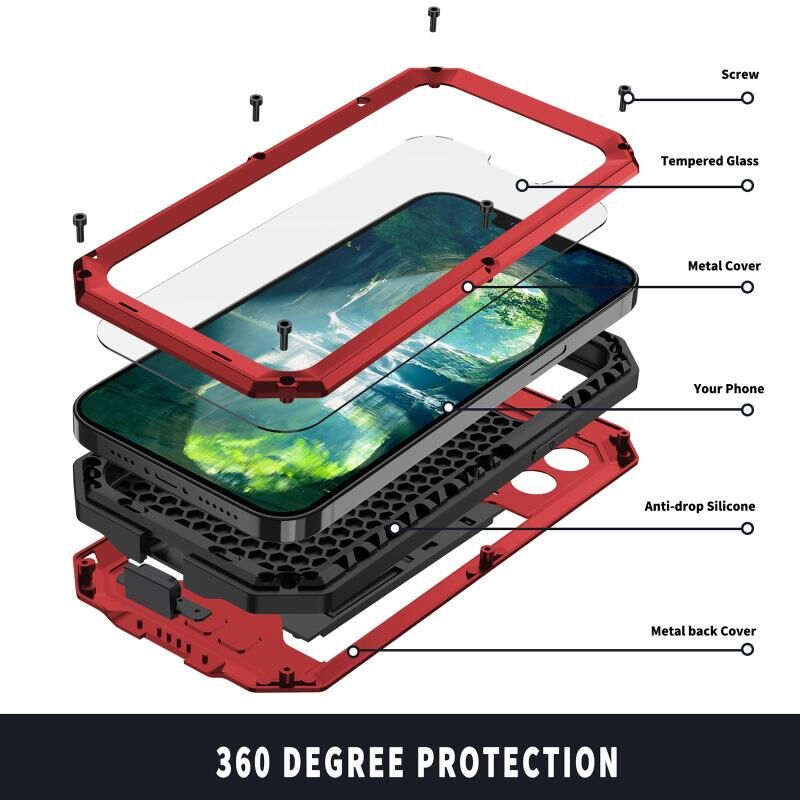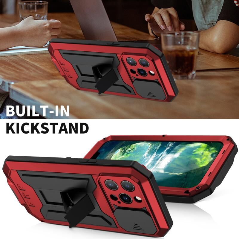 For iPhone 13 Pro R-JUST Sliding Camera Shockproof Life Waterproof Dust-proof Metal + Silicone Protective Case with Holder (Red) (R-JUST)
