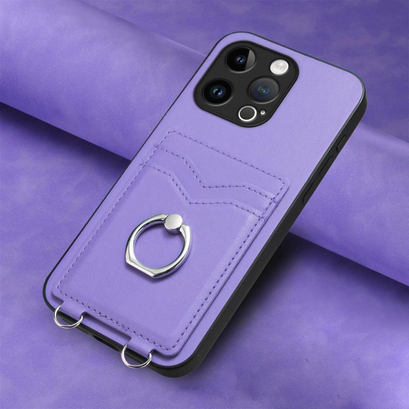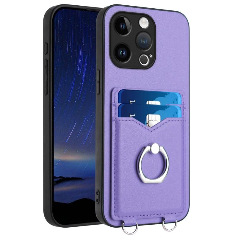 For iPhone 13 Pro R20 Ring Card Holder Phone Case(Purple)