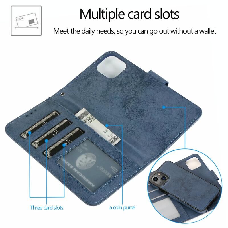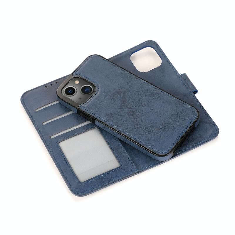 For iPhone 13 Pro Retro 2 in 1 Detachable Horizontal Flip Leather Case with Card Slots & Wallet (Dark Blue)