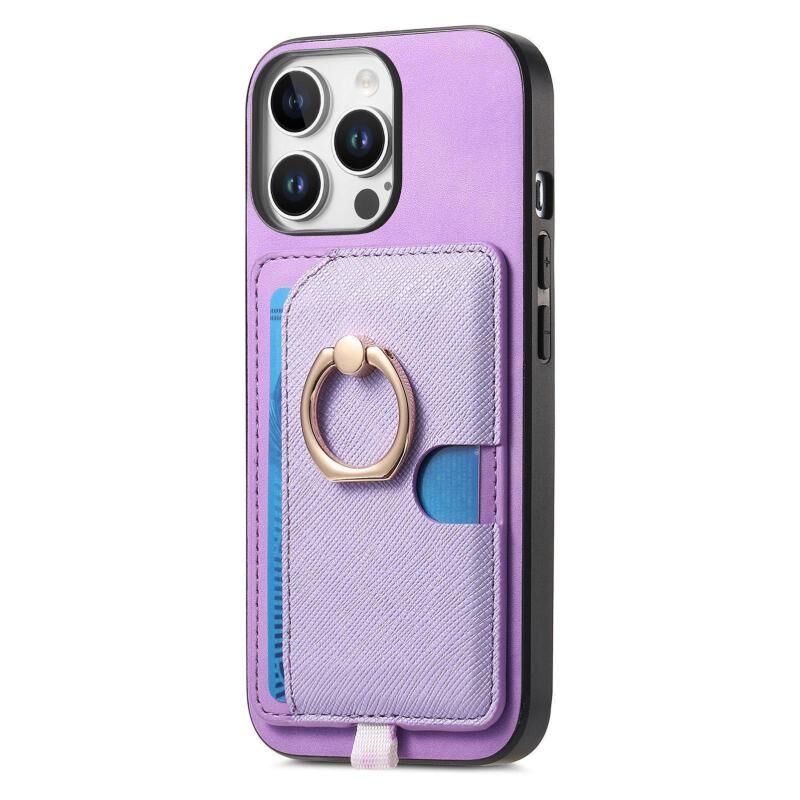 For iPhone 13 Pro Retro Cross Leather Ring Side Insert Card Bag MagSafe Phone Case(Purple)