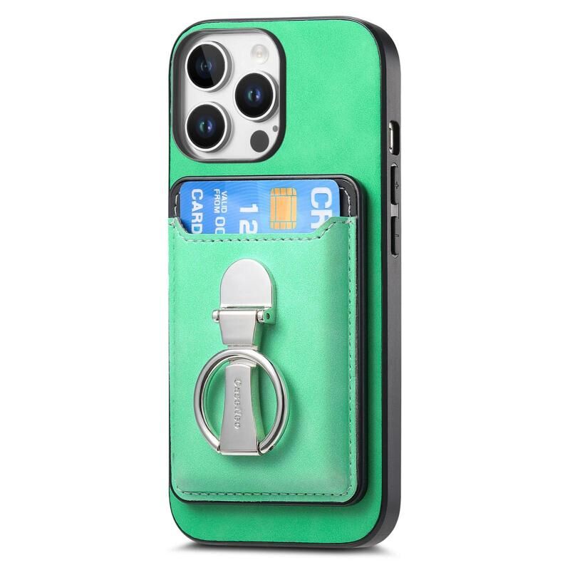 For iPhone 13 Pro Retro Folding Ring Holder Card Bag MagSafe Phone Case(Green)