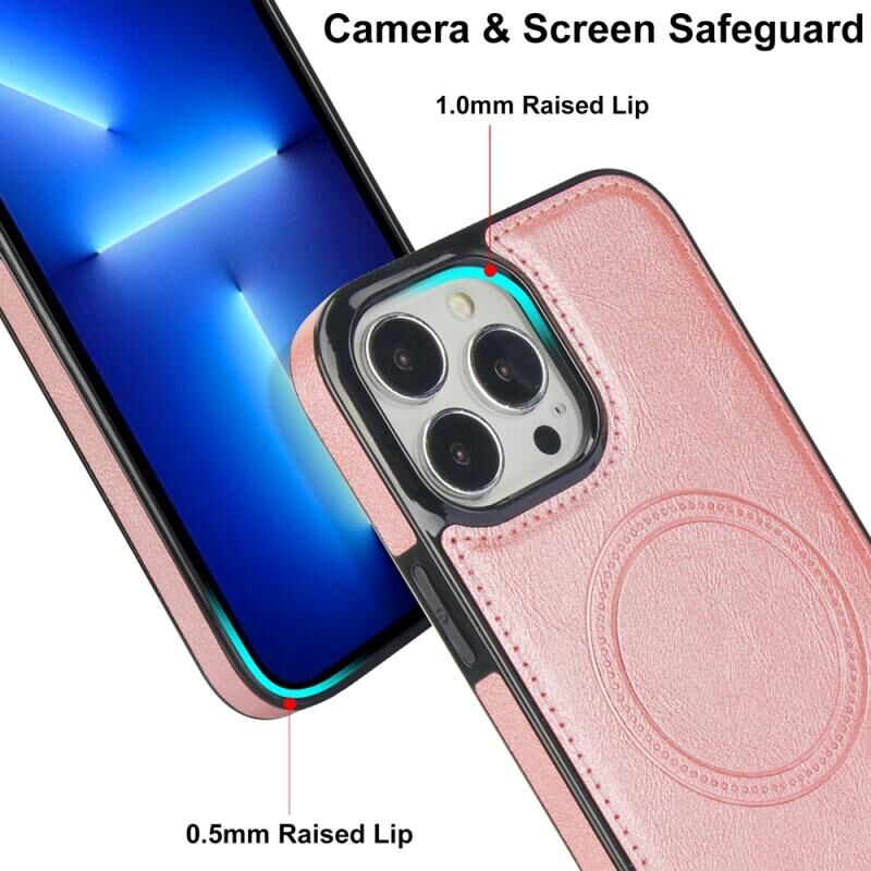 For iPhone 13 Pro Retro Leather Invisible Stand MagSafe Phone Case(Rose Gold)
