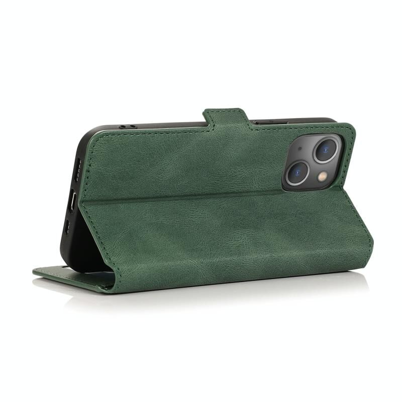 For iPhone 13 Pro Retro Magnetic Closing Clasp Horizontal Flip Leather Case with Holder & Card Slots & Photo Frame & Wallet (Green)