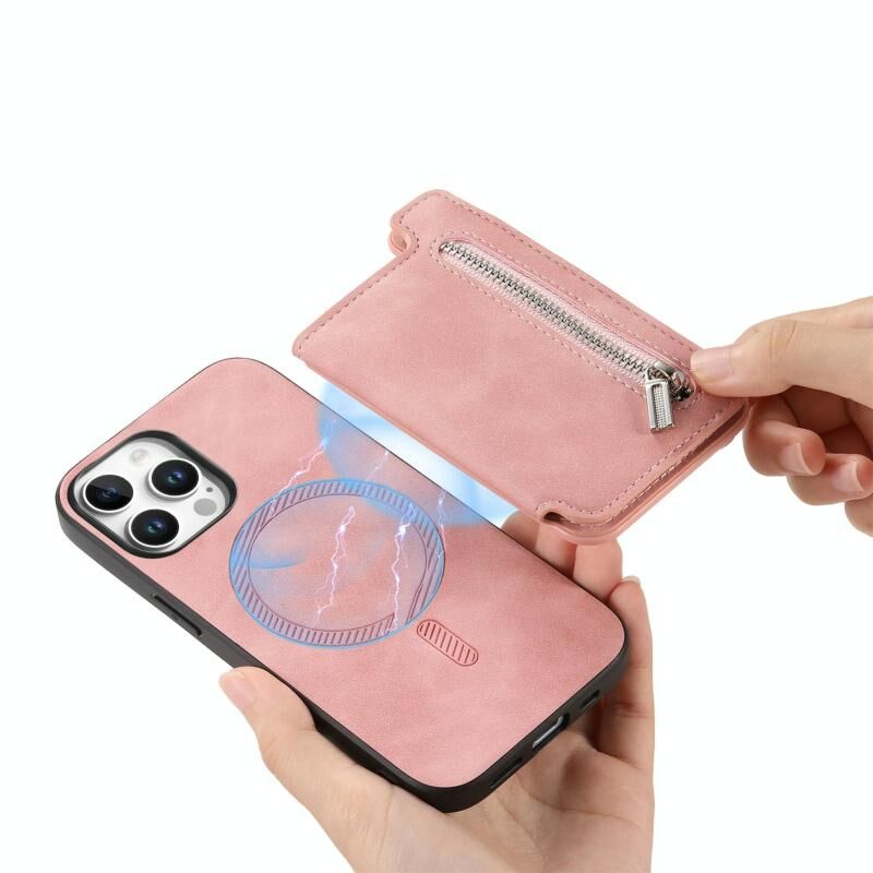 Θήκη κινητού τηλεφώνου για iPhone 13 Pro με ρετρό πορτοφόλι MagSafe με φερμουάρ και θήκη για κάρτες (Μπλε)