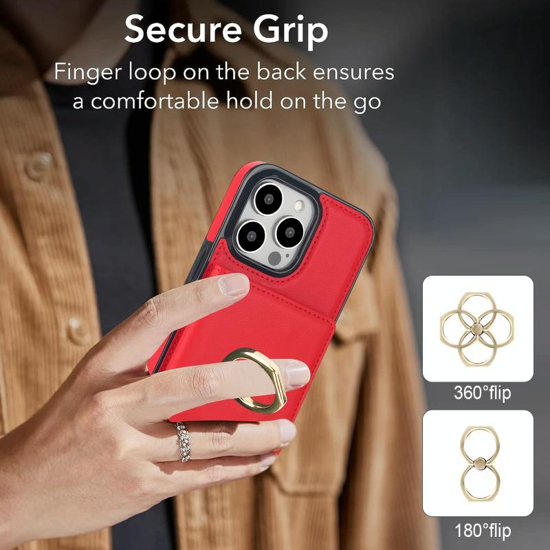 For iPhone 13 Pro RFID Anti-theft Card Ring Holder Phone Case(Red)
