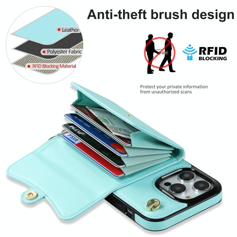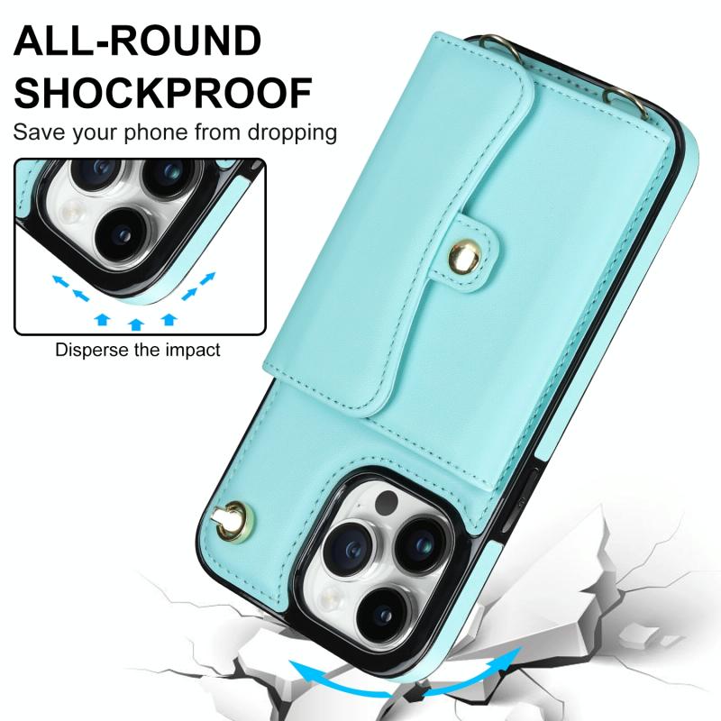 For iPhone 13 Pro RFID Card Slot Phone Case with Long Lanyard(Mint Green)