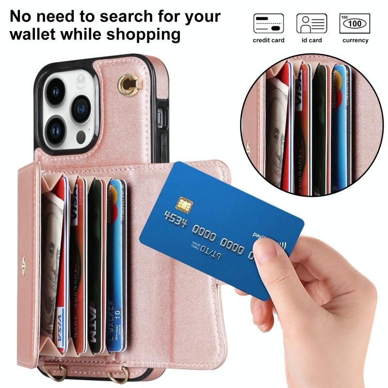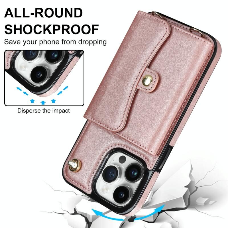 For iPhone 13 Pro RFID Card Slot Phone Case with Long Lanyard(Rose Gold)