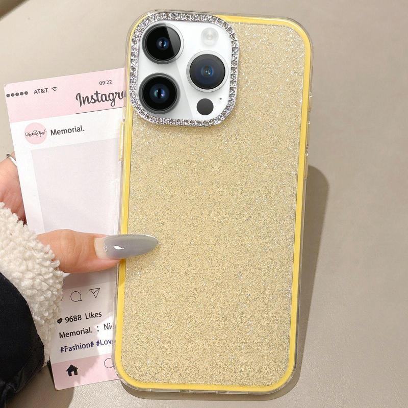 For iPhone 13 Pro Rhinestone-Embedded Camera Frame Glitter Full Coverage Phone Case(Yellow)