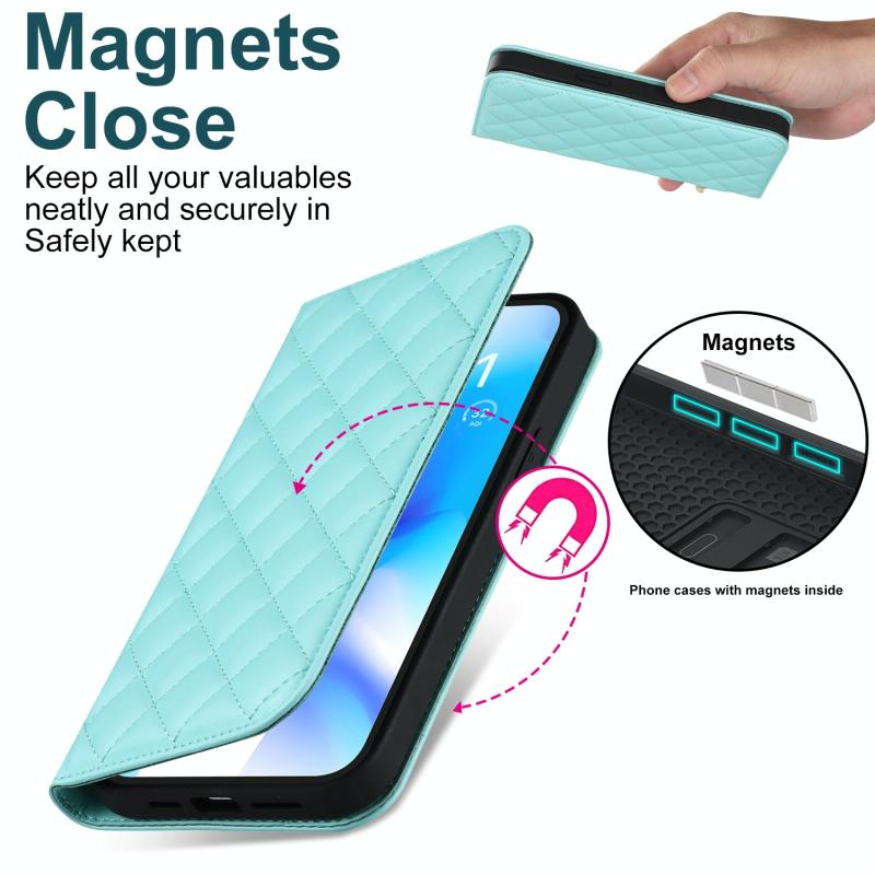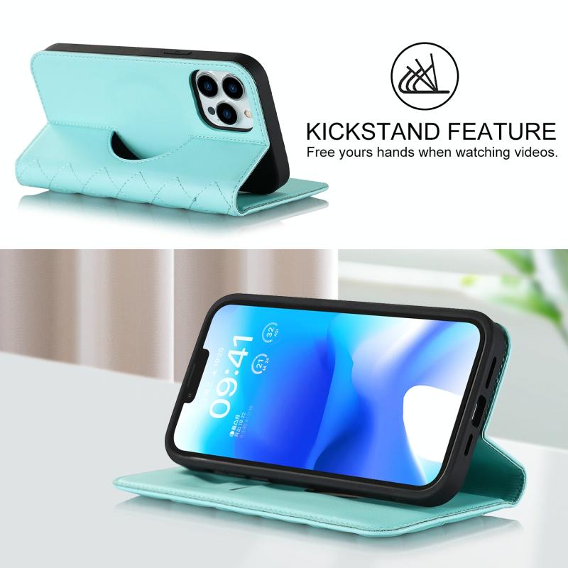 For iPhone 13 Pro Rhombic MagSafe RFID Anti-Theft Wallet Leather Phone Case(Sky Blue)