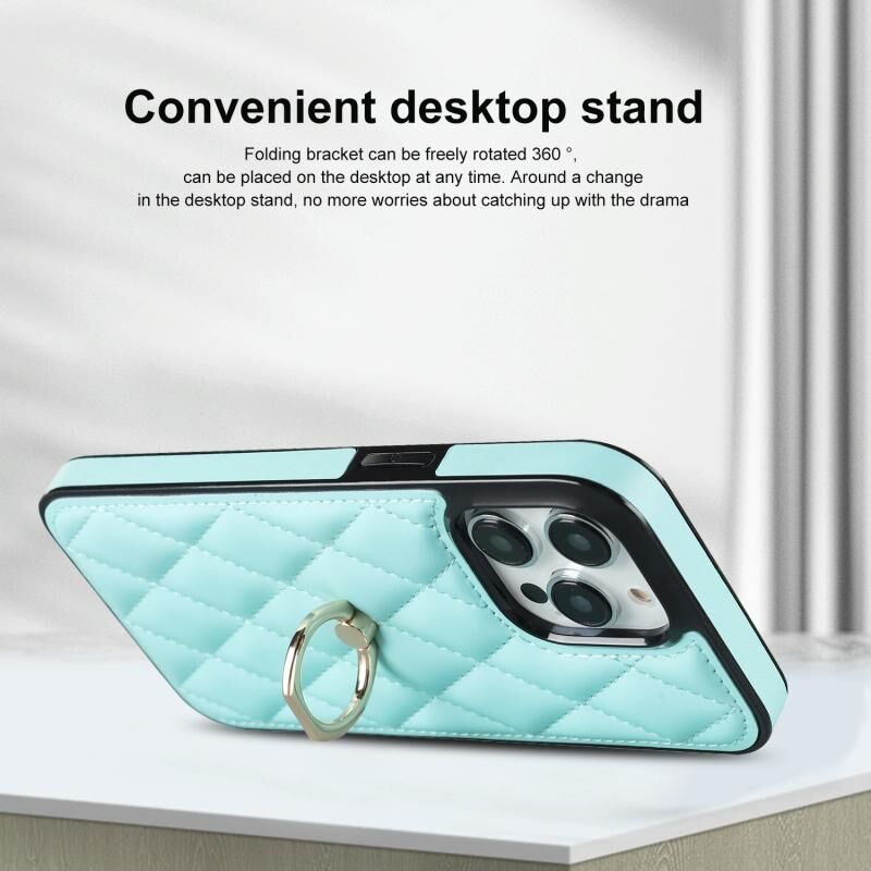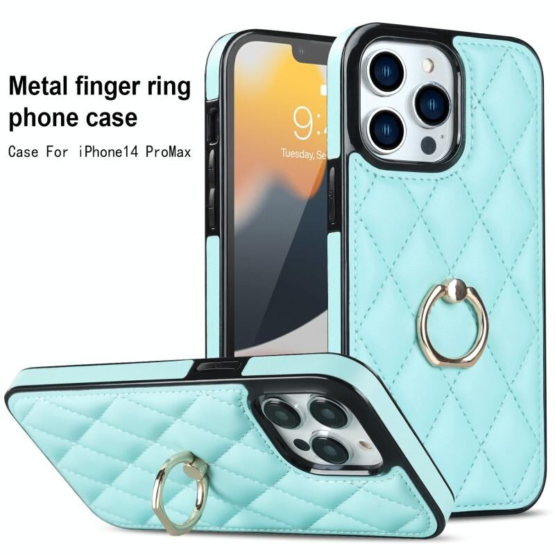 For iPhone 13 Pro Rhombic PU Leather Phone Case with Ring Holder(Blue)