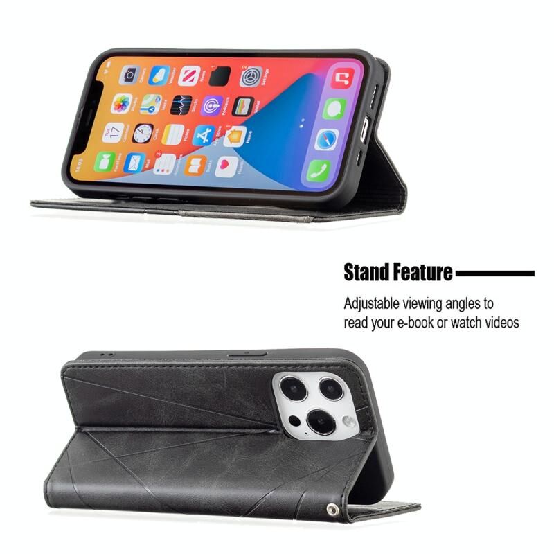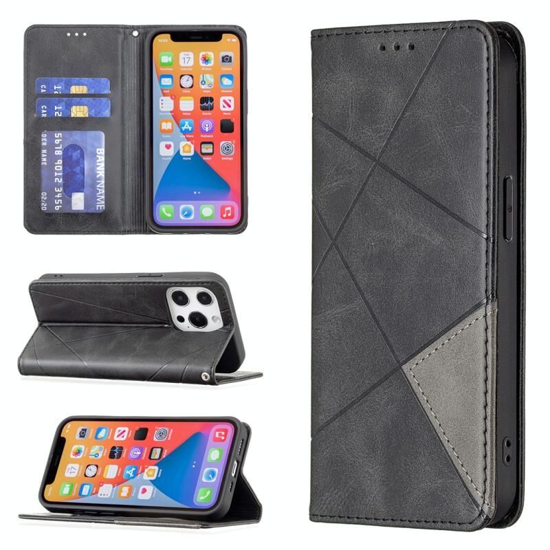 For iPhone 13 Pro Rhombus Texture Horizontal Flip Magnetic Leather Case with Holder & Card Slots (Black)