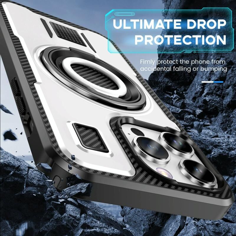 Θήκη τηλεφώνου για iPhone 13 Pro με δακτύλιο στήριξης, υβριδική από ανθρακονήματα PC και TPU (Λευκό)
