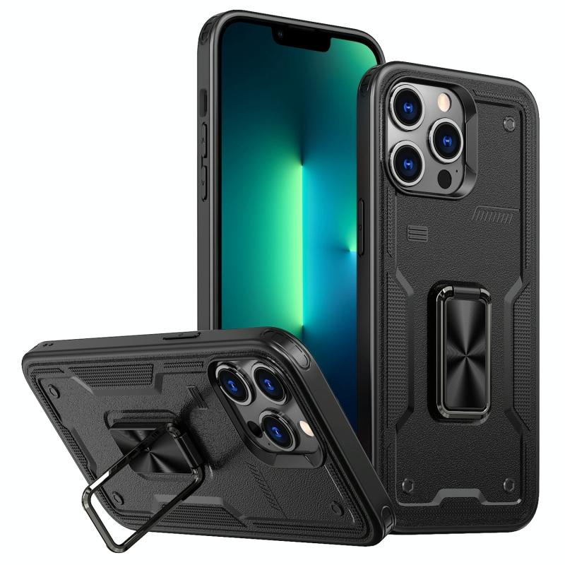 For iPhone 13 Pro Ring Holder PC Hybrid TPU Phone Case(Black)