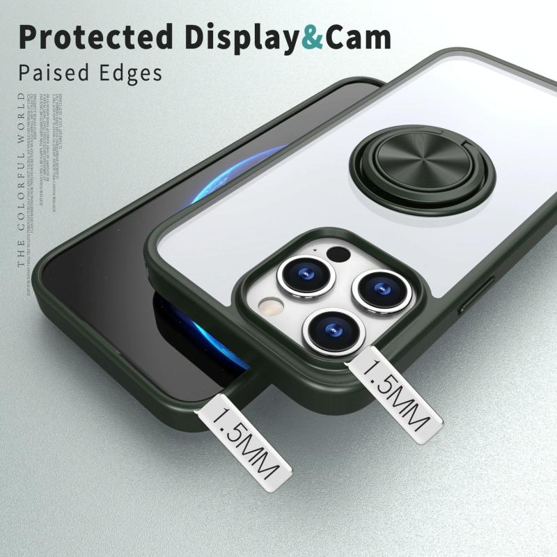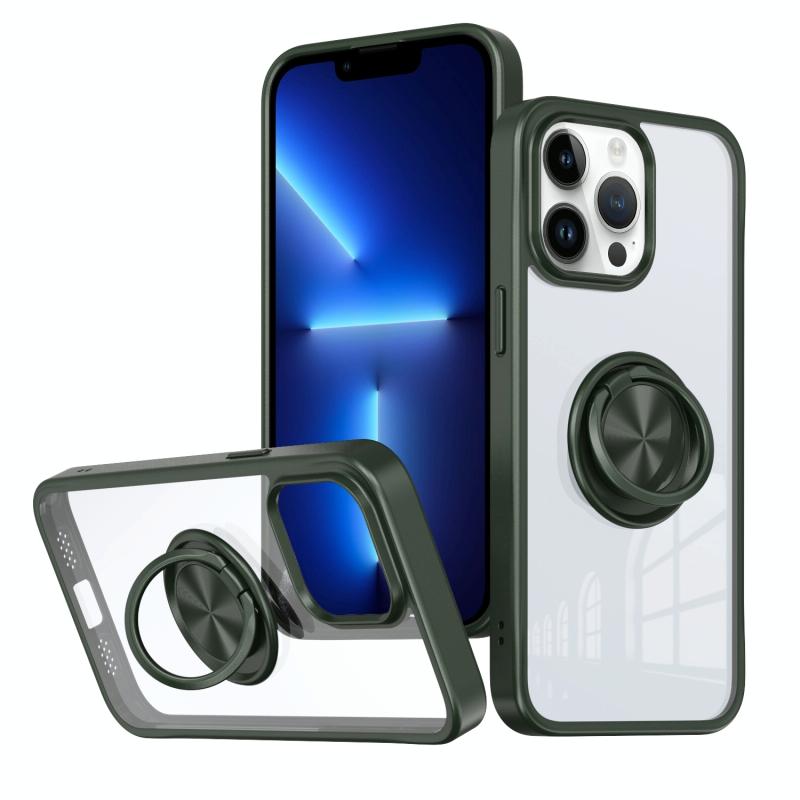 For iPhone 13 Pro Ring Holder PC Hybrid TPU Phone Case(Green)