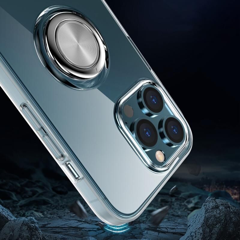 For iPhone 13 Pro Shockproof Matte Transparent TPU Protective Case with Ring Holder (White)