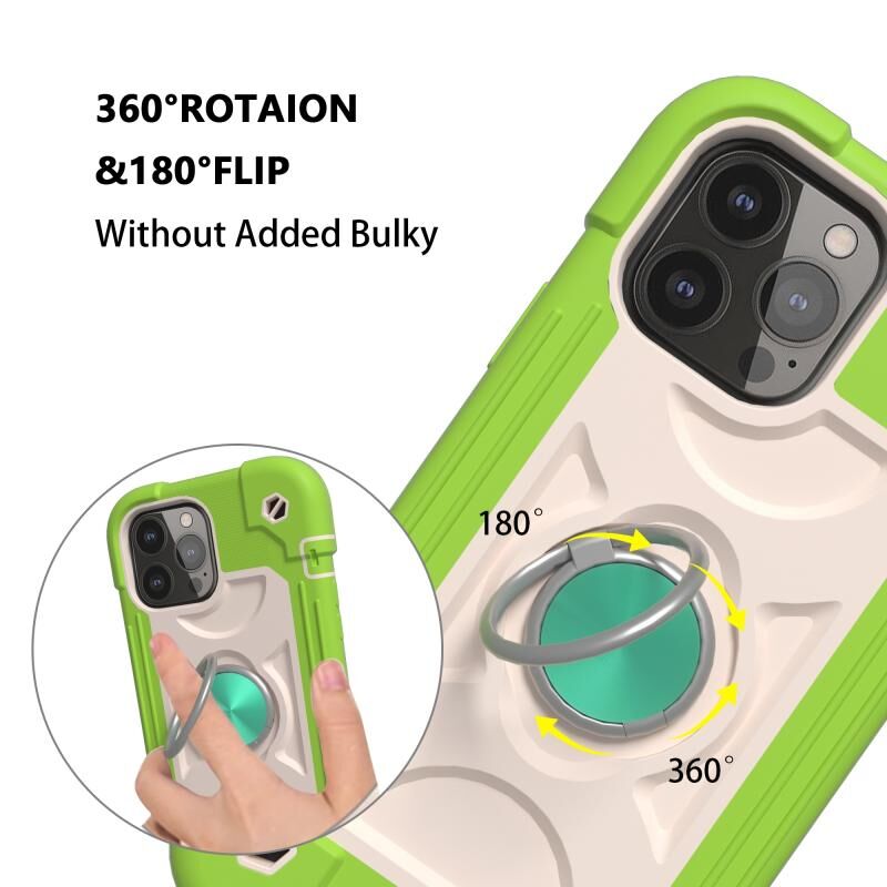For iPhone 13 Pro Shockproof Silicone + PC Protective Case with Dual-Ring Holder (Guava)