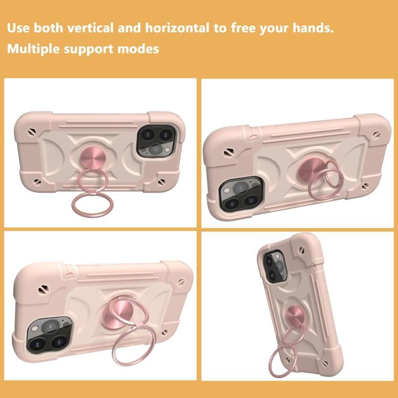 For iPhone 13 Pro Shockproof Silicone + PC Protective Case with Dual-Ring Holder (Rose Gold)